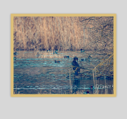 Un pêcheur gourmand au lac, les poissons ne peuvent que bien se tenir.