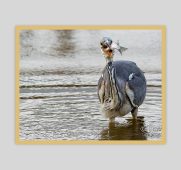 L’eau est à un niveau bas et loin d’être transparente, mais un après-midi de pêche n’arrête pas le héron cendré